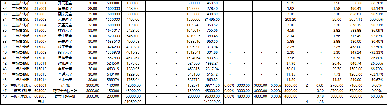 汉唐艺术品交易所主板藏品2017年9月19日交易数据统计